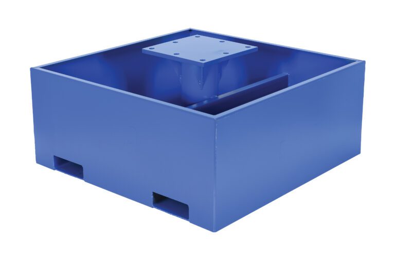 Additional Jib Crane base empty with instructions for proper filling with concrete.