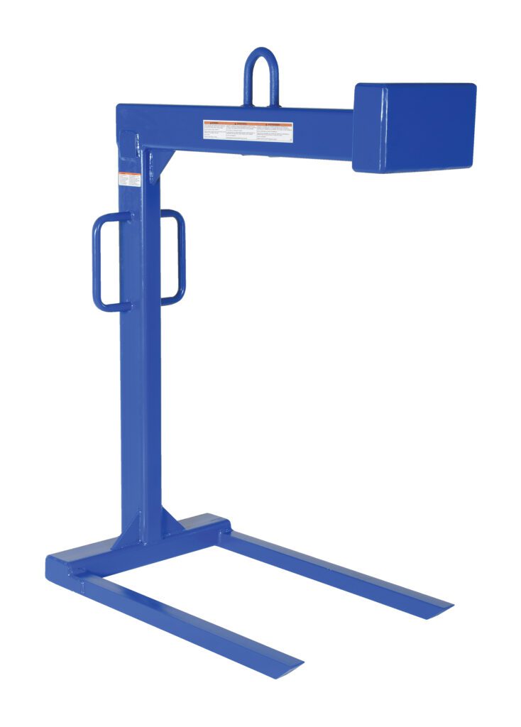 This solid steel Pallet Lifter contains tapered forks to allow easy access under pallets. Main support contains handles to allow personnel to position the unit. Large square head serves as a counterweight to keep the unit level without a load.