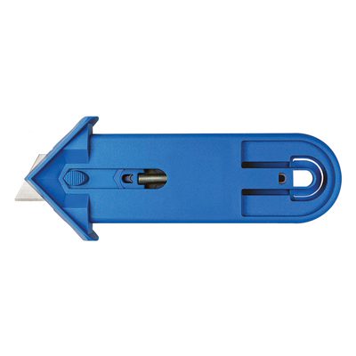 Safely cuts boxes, shrink wrap, plastic strapping and tape.