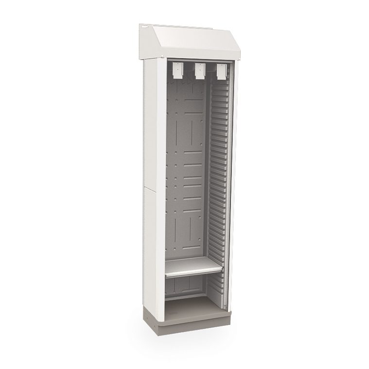- Includes: 80″H Stationary Shell, 1 Half-Depth Catheter Shelf, 3 Half-Depth Catheter Slides, 30 Labels, 15 Catheter Hooks, 1 Half-Depth Polymer Shelf, Tambour Door with M300 Series Keylock