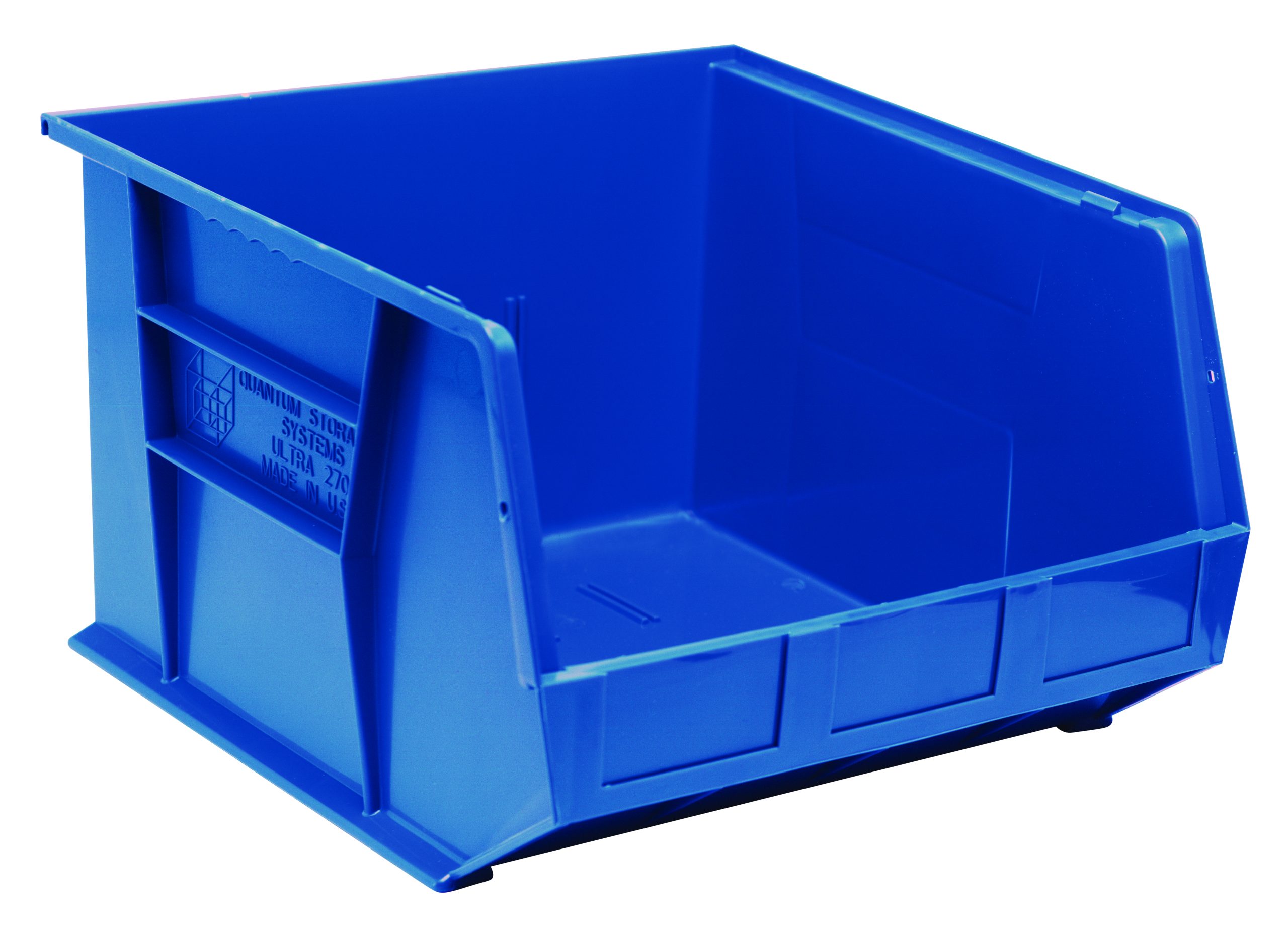 Quantum Bin, Stacking Or Hanging, 16-1/2″W X 18″D X 11″H, Front/Back/Side Grips, Anti-Slide Lock, (3) Divider Slot, Rear Hanger, Molded-In Label Holder, Polypropylene, Blue, Made In USA