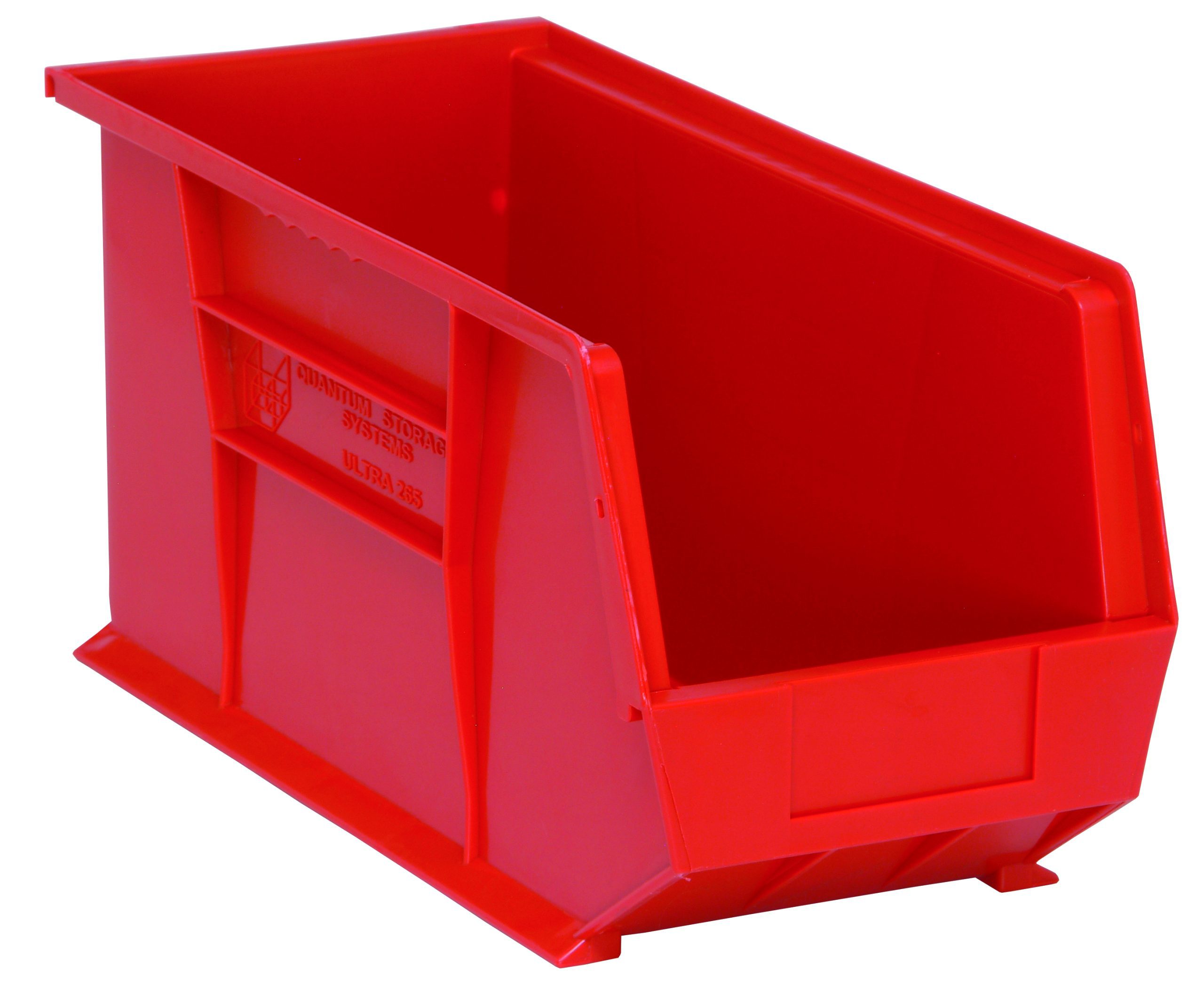 Quantum Bin, Stacking Or Hanging, 8-1/4″W X 18″D X 9″H, Front/Back/Side Grips, Anti-Slide Lock, (1) Divider Slot, Rear Hanger, Molded-In Label Holder, Polypropylene, Red, Made In USA