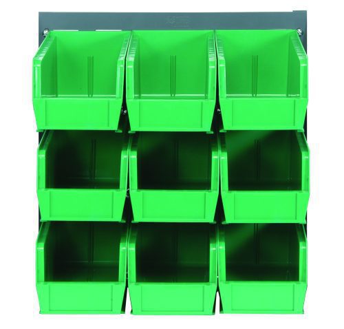 Louvered Panel, wall mounted, 18″L x 11″H, includes: (9) QUS230, clear bins, heavy-duty 16 gauge cold rolled steel, gray enamel coated finish (mounting hardware not included)
