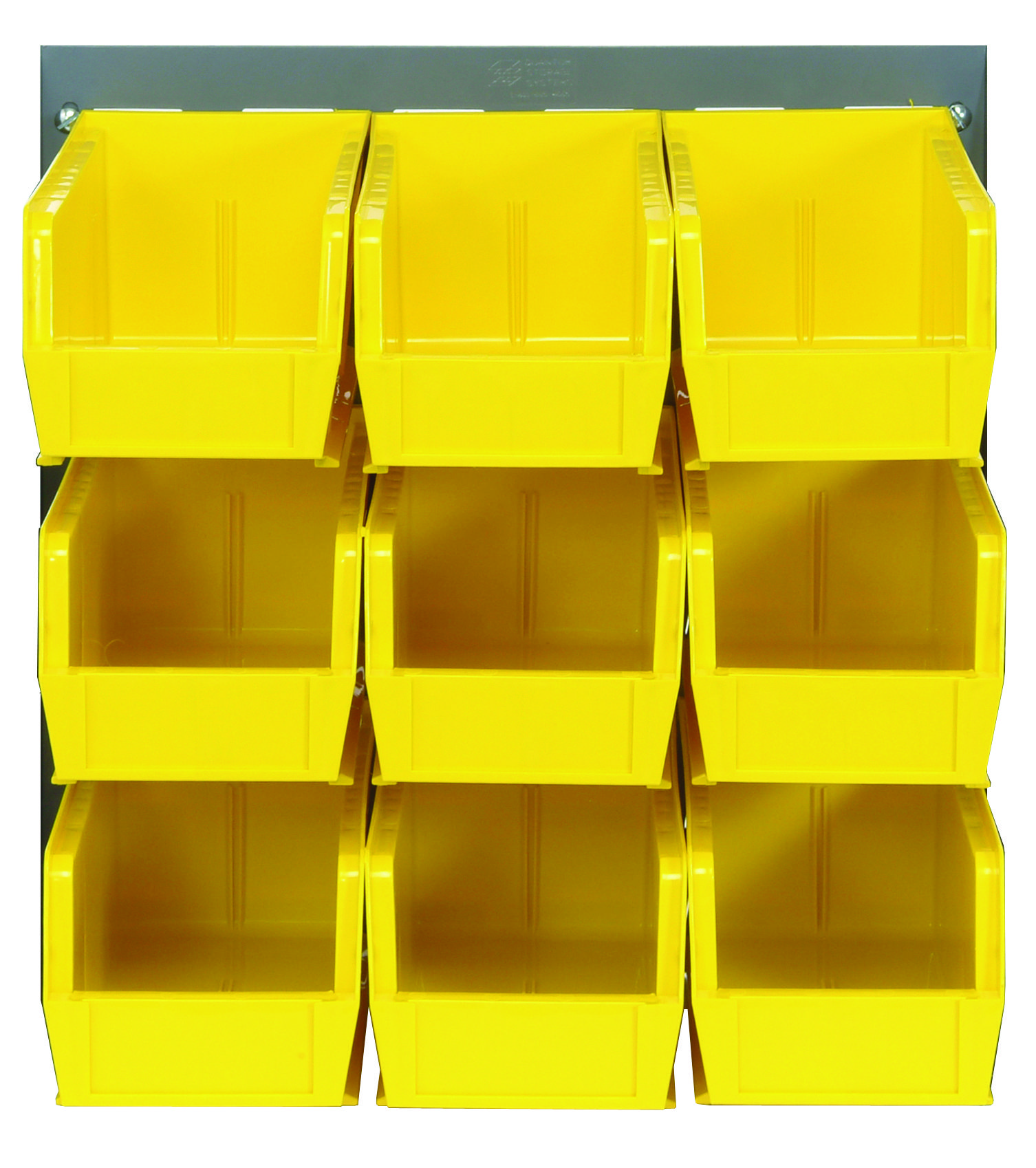 Quantum Louvered Panel, Wall Mounted, 18″L X 11″H, Includes: (9) QUS230, Clear Bins, Heavy-Duty 16 Gauge Cold Rolled Steel, Gray Enamel Coated Finish (Mounting Hardware Not Included) – QM-QLP-1819-230-9YL