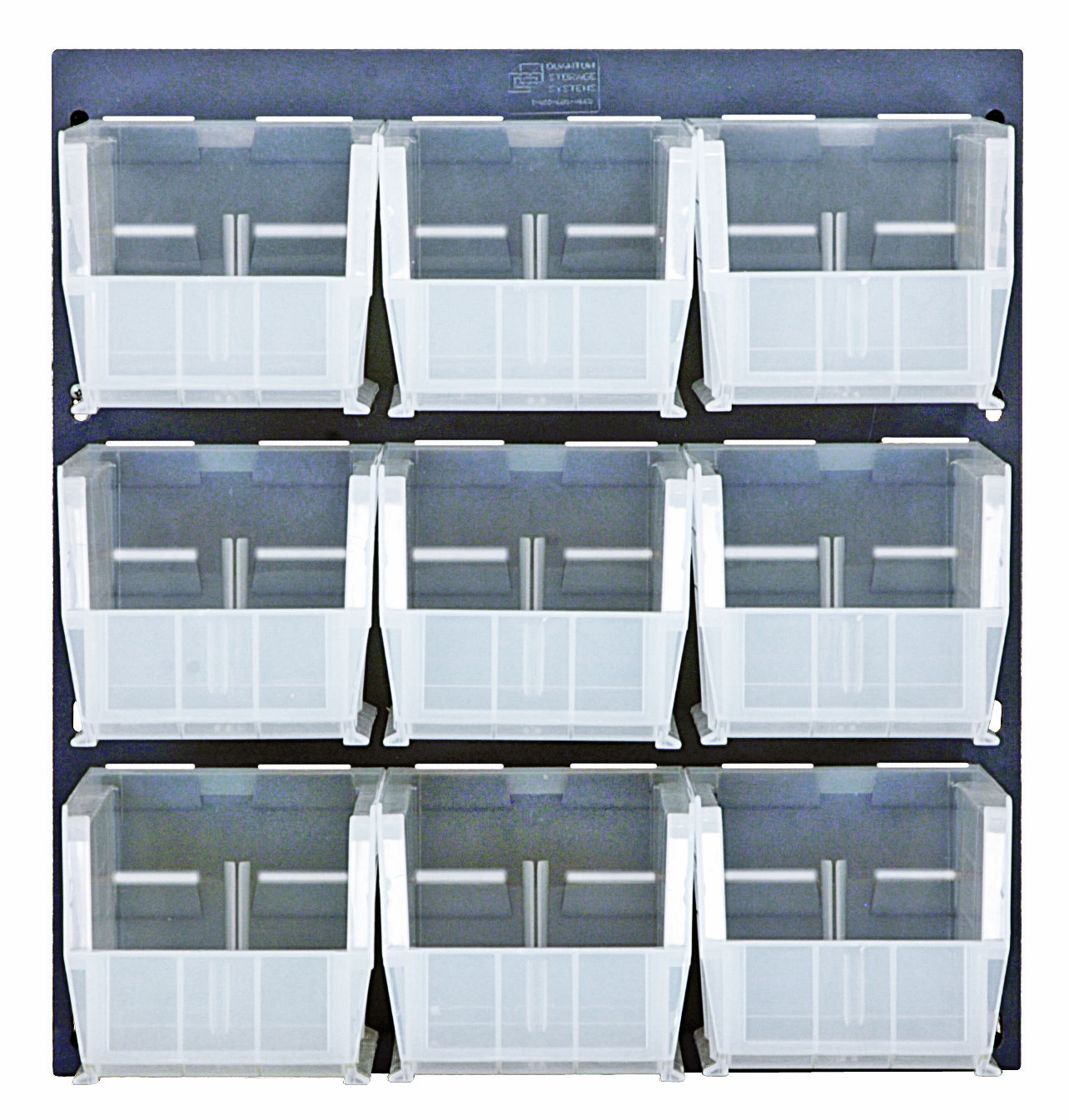 Quantum Louvered Panel, Wall Mounted, 18″L X 11″H, Includes: (9) QUS230, Clear Bins, Heavy-Duty 16 Gauge Cold Rolled Steel, Gray Enamel Coated Finish (Mounting Hardware Not Included) – QM-QLP-1819-230-9CL