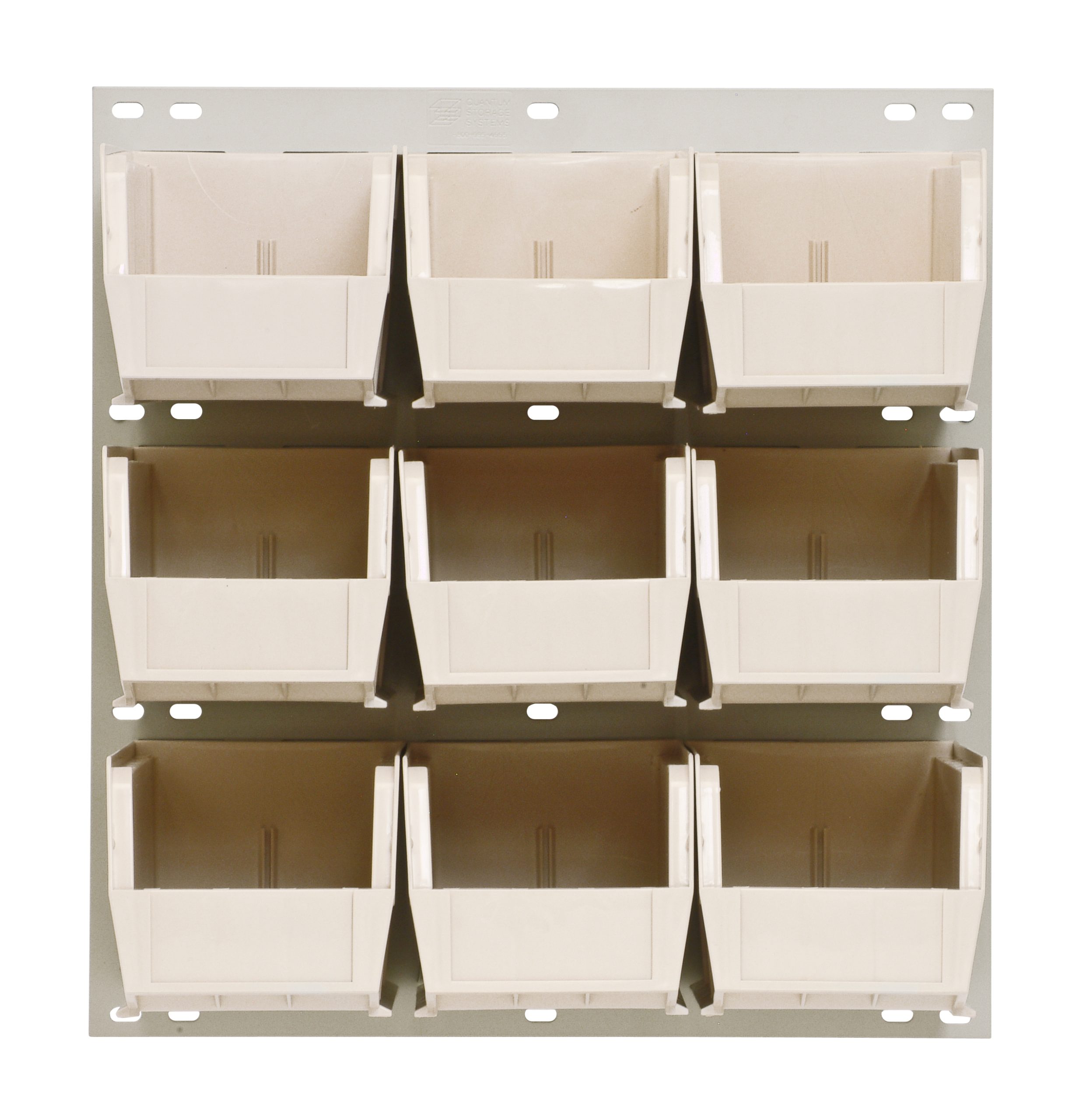 Quantum Louvered Panel, Wall Mounted, 18″L X 11″H, Includes: (9) QUS230, Clear Bins, Heavy-Duty 16 Gauge Cold Rolled Steel, Oyster White Enamel Coated Finish (Mounting Hardware Not Included) – QM-QLP-1819HC-230-9IV