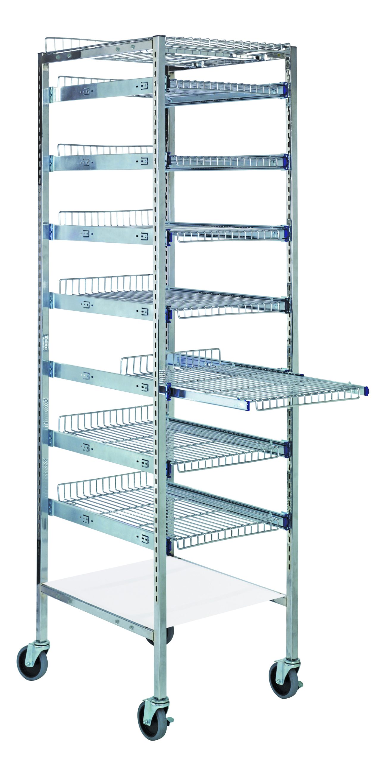 Partition Store Starter Unit with wire shelves, 19-1/2″L x 24″D x 75″H, includes: (7) shelves on slides, bottom dust cover and (25) hanging label tags, chrome plated finish