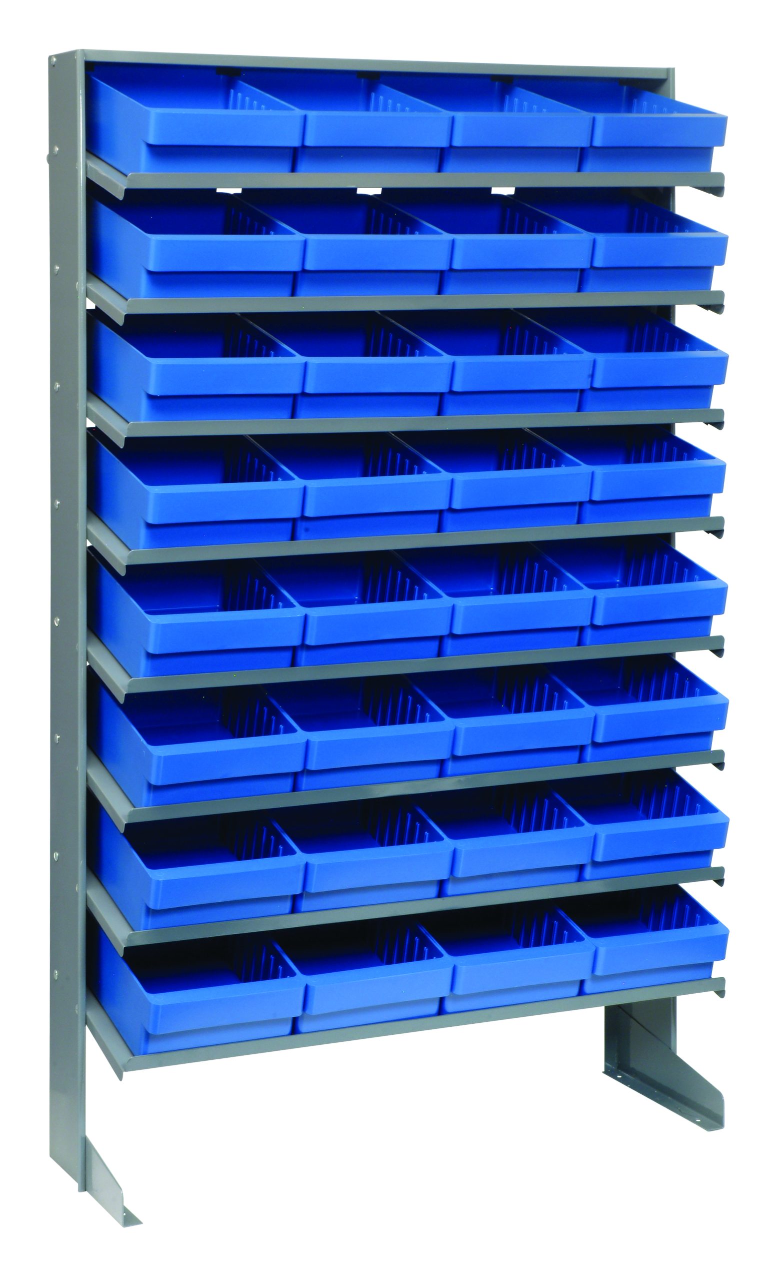 Quantum Pick Rack, Slopped, Single Sided, 12″D X 36″W X 63-1/2″H, 400 Lbs. Capacity, Includes: (8) Shelves And (32) QED701 Blue Bins, Galvanized Steel