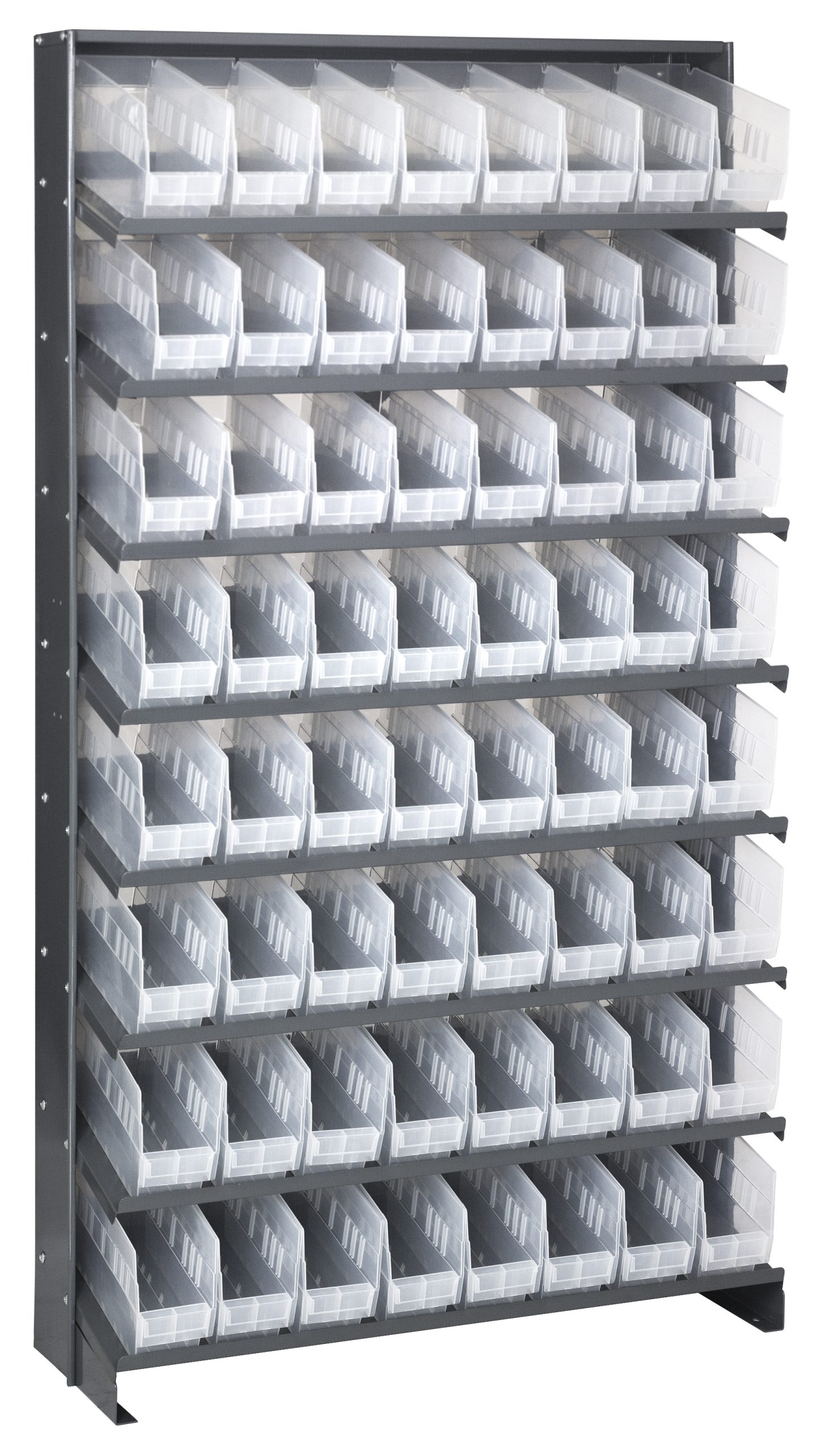 Quantum Pick Rack, Slopped, Single Sided, 12″D X 36″W X 63-1/2″H, 400 Lbs. Capacity, Includes: (8) Shelves And (64) Qsb201 Clear Bins, Galvanized Steel