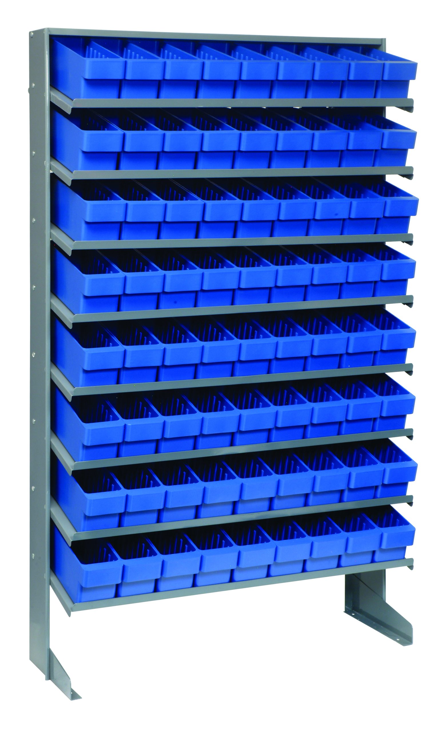 Quantum Pick Rack, Slopped, Single Sided, 12″D X 36″W X 63-1/2″H, 400 Lbs. Capacity, Includes: (8) Shelves And (72) QED501 Blue Bins, Galvanized Steel