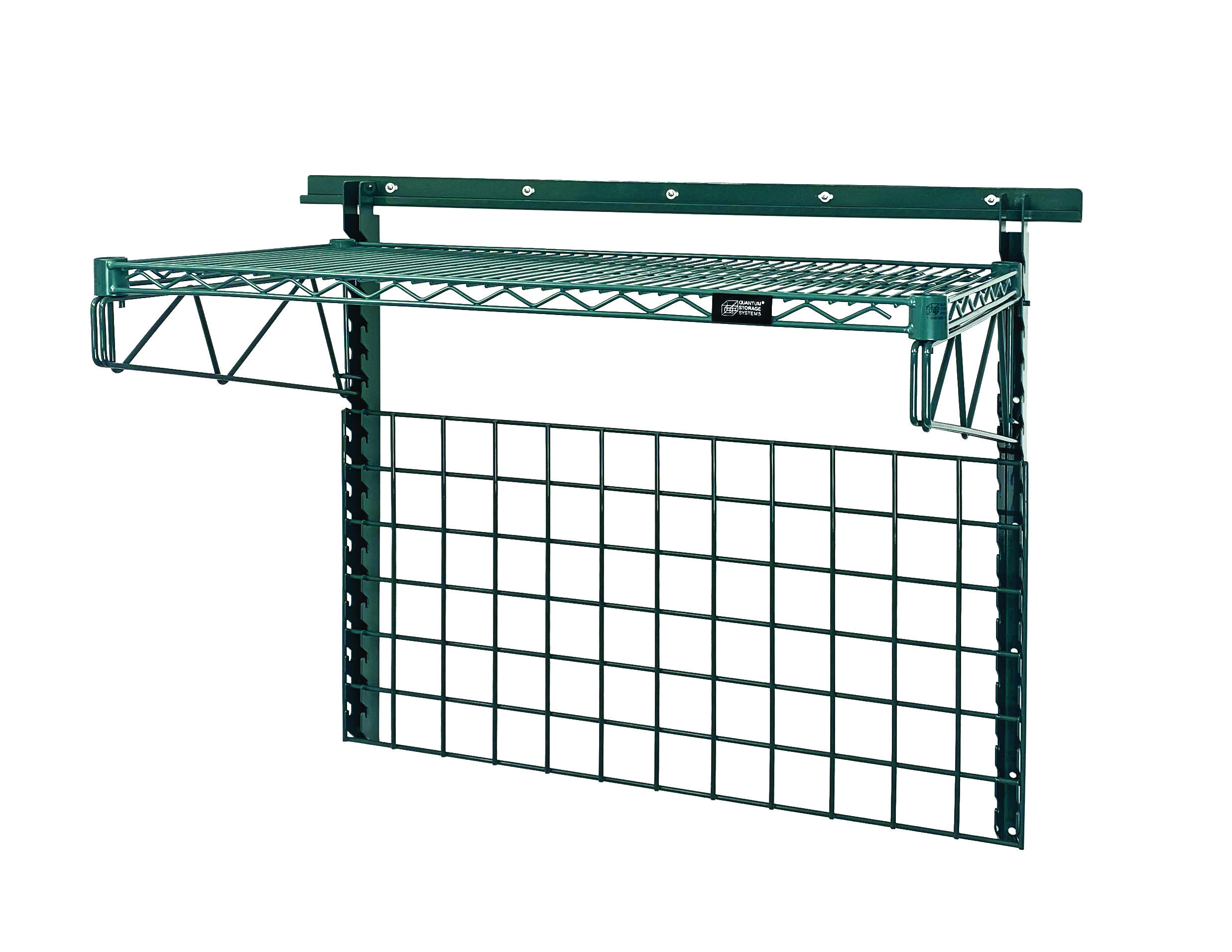 Quantum Store Grid Medium-Duty Kit, Includes: (1) 40″ Wall Track, (2) 31″ Upright, (2) 18″ Single Cantilever Arm, (1) Shelf (1836P), And (1) 36″W X 18″H Grid Panel, Green Epoxy Antimicrobial Finish, NSF
