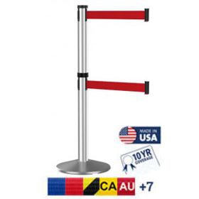 This Dual Line Crowd Control Post, by Visiontron®, features the highest quality available for high traffic crowd control barriers. Manufactured in the USA with two piece construction for easy on-site repairs, unlike most other dual line posts. It has two ADA Compliant thick and durable 10′ belts that are over 30% longer then most competitively priced line posts, resulting in fewer stanchions to buy, ship, and store. These posts are recommended for indoor use. Or find a 15′ single line solution available.