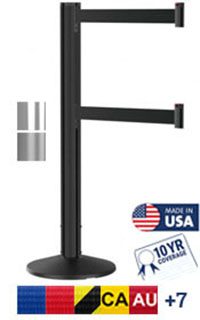 This Dual Line Grooved Crowd Control Post, by Visiontron®, features the highest quality available for high traffic crowd control barriers. Manufactured in the USA with two piece construction for easy on-site repairs, unlike most other dual line posts. It has two ADA Compliant thick and durable 9′ belts that are over 25% longer then most competitively priced line posts, resulting in fewer stanchions to buy, ship, and store. These posts are recommended for indoor use, Weather Resistant Option available.