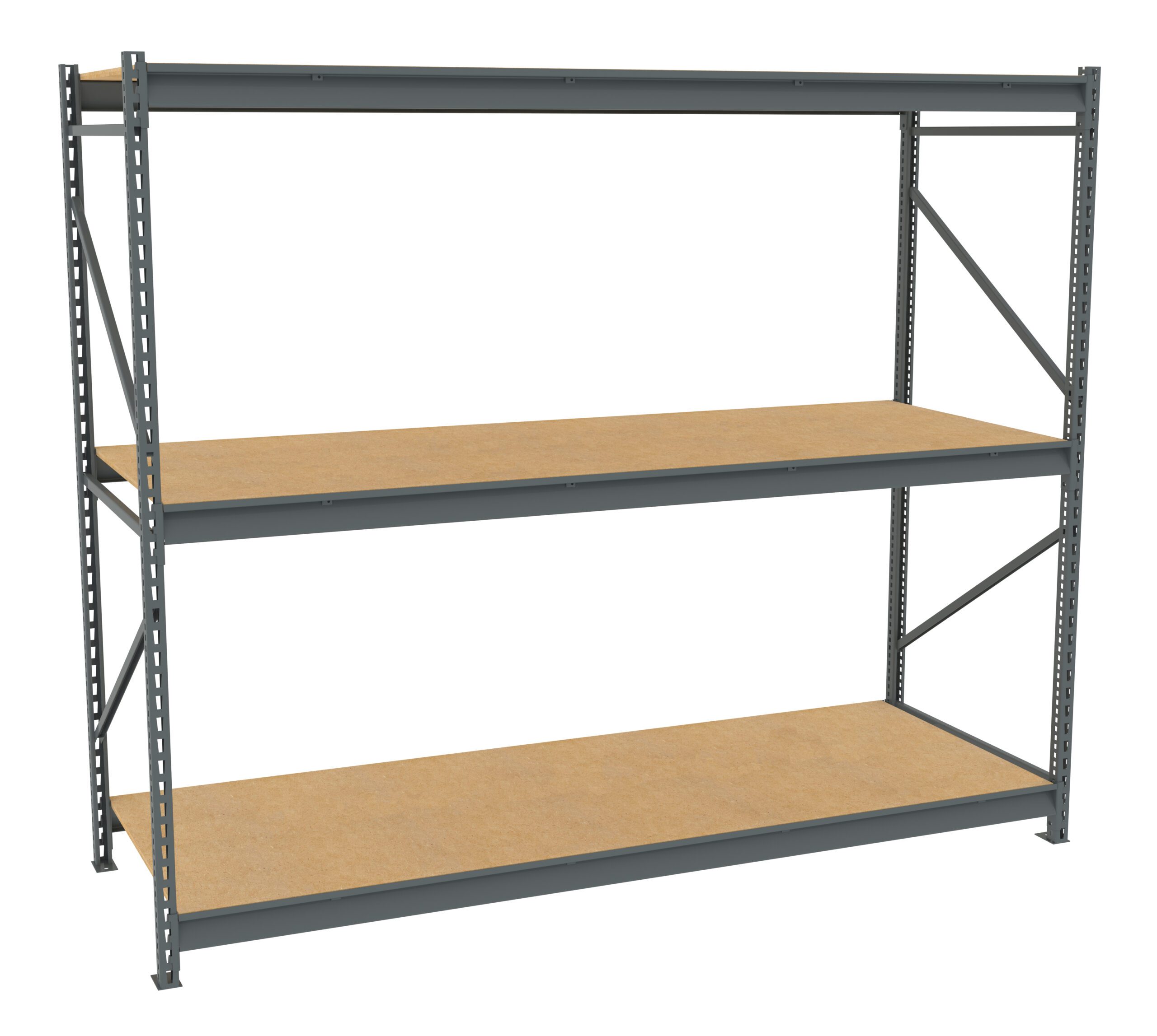 Bulk storage units go together fast and easy. Beams simply slide into place. Superior beams lock into the uprights on 2” centers. Specially formed beams add strength at the front and rear of shelf edges. Industrial grade 5/8” thick particleboard provides a sturdy work surface that is both strong and economical.