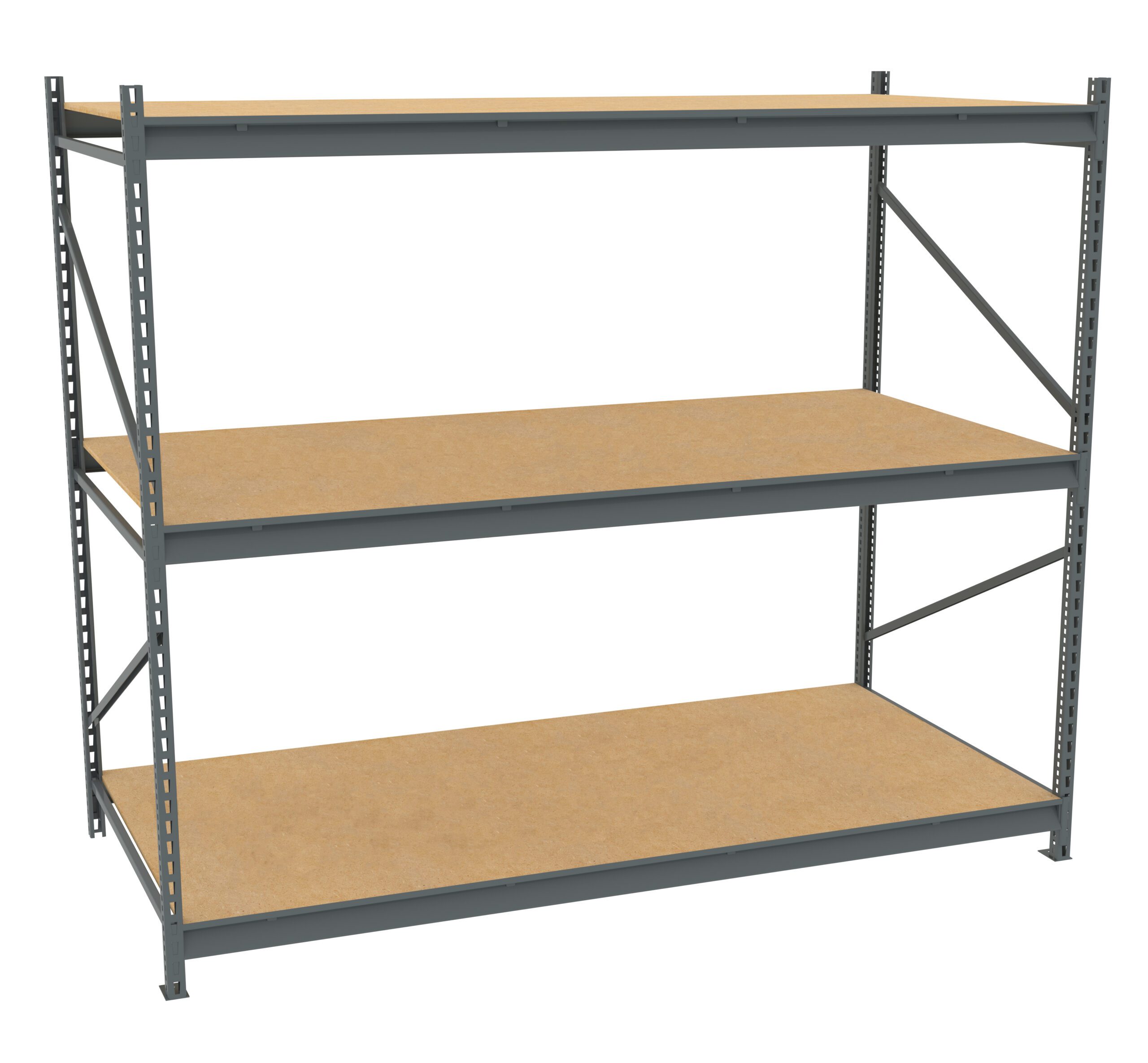 Bulk storage units go together fast and easy. Beams simply slide into place. Superior beams lock into the uprights on 2” centers. Specially formed beams add strength at the front and rear of shelf edges. Industrial grade 5/8” thick particleboard provides a sturdy work surface that is both strong and economical.