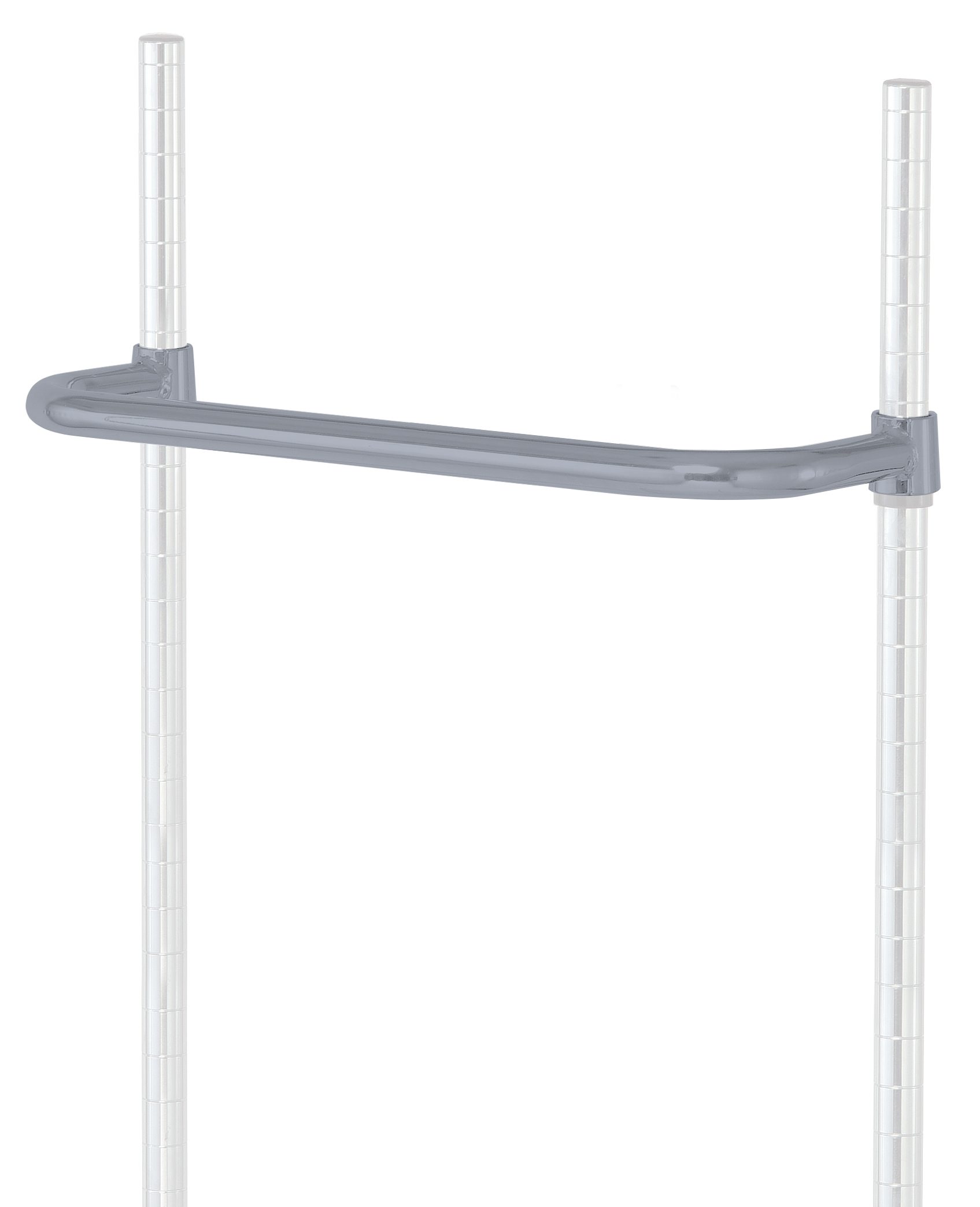 The Quantum Push Handle, 21W, with a gray epoxy antimicrobial finish, mounts on two adjustable-height metal poles. Its likely part of a shelving system against a plain white background.