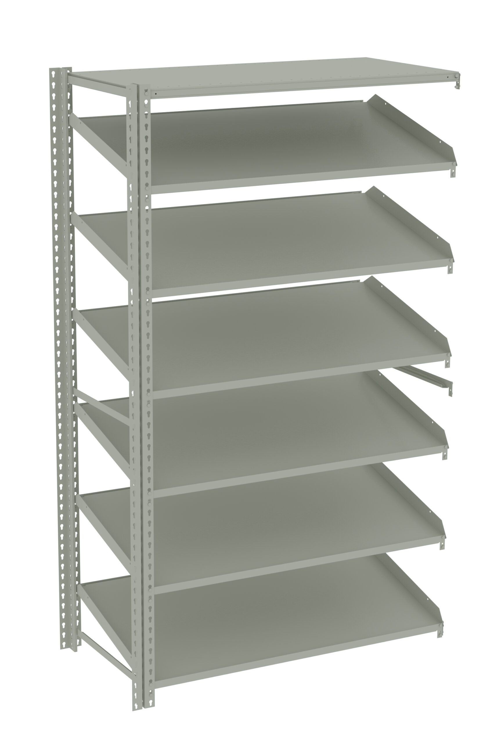 Tennsco 48″W x 24″D Sloped Shelving Adder Unit, Light Grey