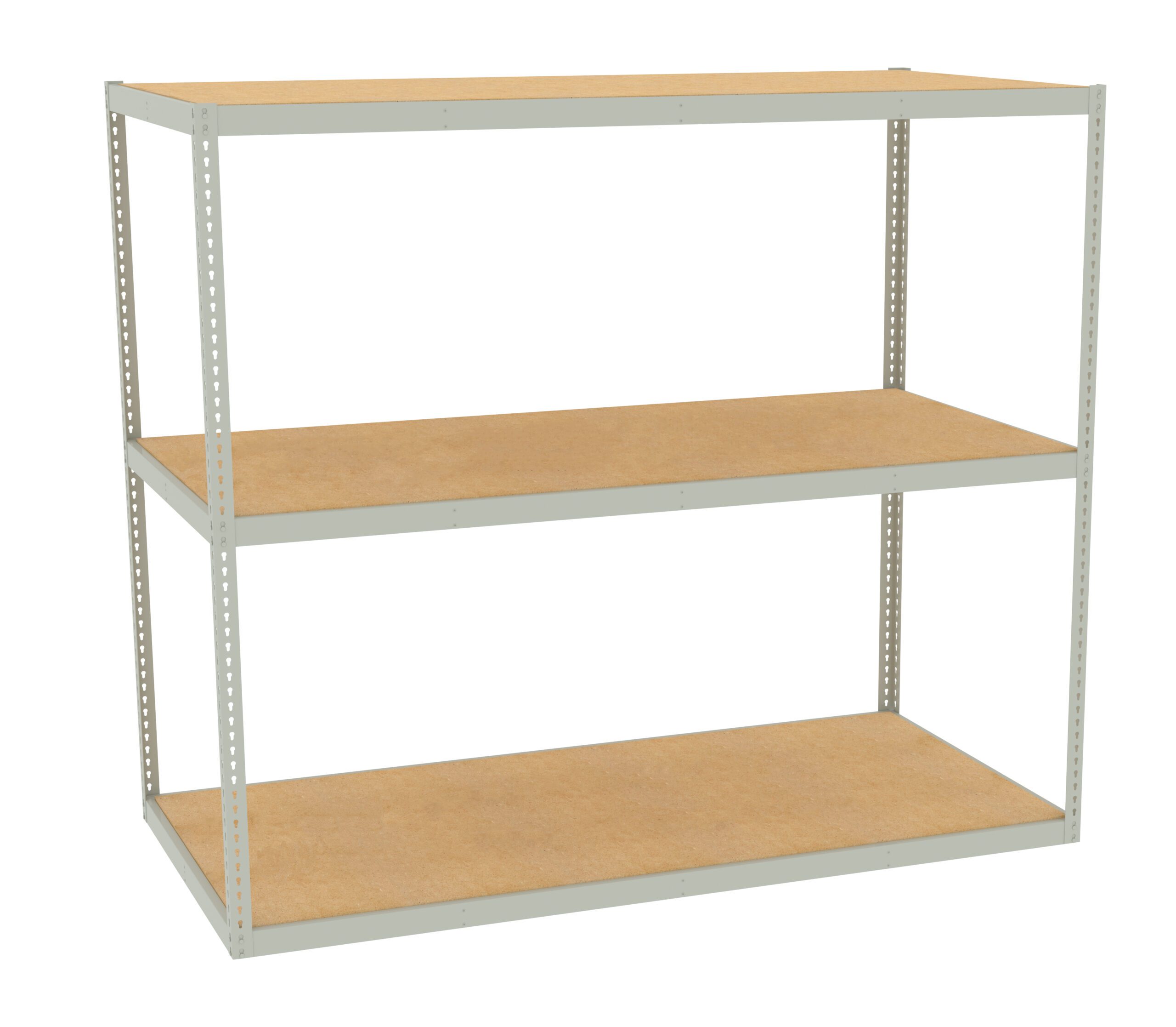3 1/4” high steel channel beam provides maximum strength. Tapered keyhole slots and snap-in rivet design makes installation easy. No side or back braces allows access to stored items from all sides. Shelves adjust in 1 1/2” increments. Locater slot makes positioning shelves easy. Center supports reinforce deep shelves.