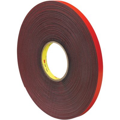 Red polyethylene liner, dark gray acrylic foam with an acrylic adhesive.