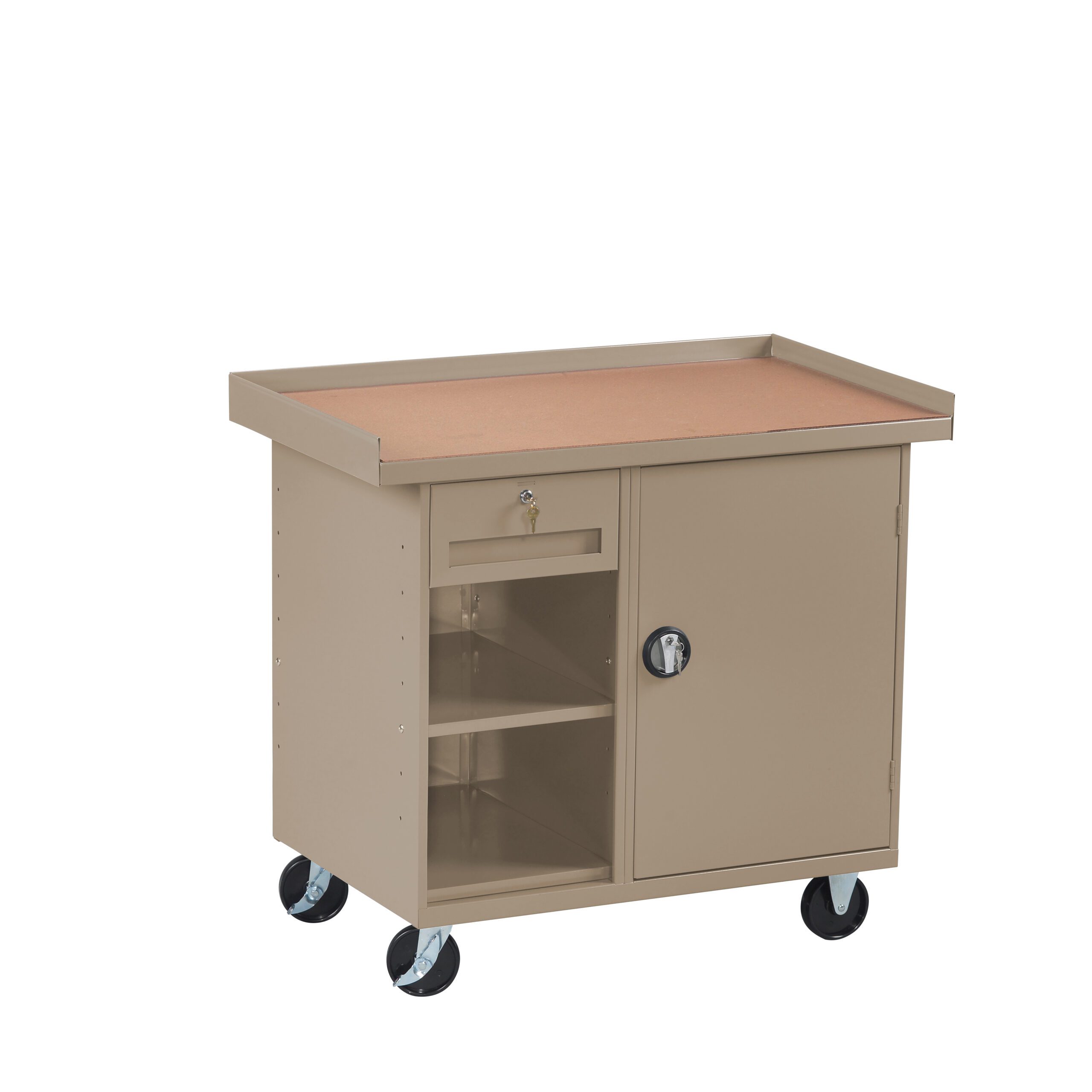 Tennsco 42″W x 25″D x 36 1/4″H Mobile Workbench with One Single Drawer Modular Unit with Open Storage and One Modular Storage Cabinet, Sand