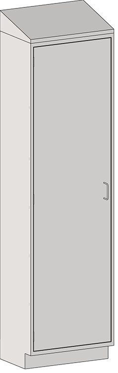 Tall Cabinet, closed front, sloped top, 18″D x 24″W x 89″H, left-hand hinged door with wire style pull, stainless steel construction, (5) adjustable intermediate shelves