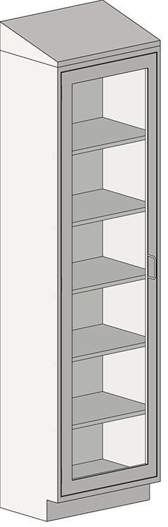 Tall Cabinet, closed front, sloped top, 18″D x 24″W x 89″H, left-hand hinged door with tempered glass insert and wire style pull, stainless steel construction, (5) adjustable intermediate shelves