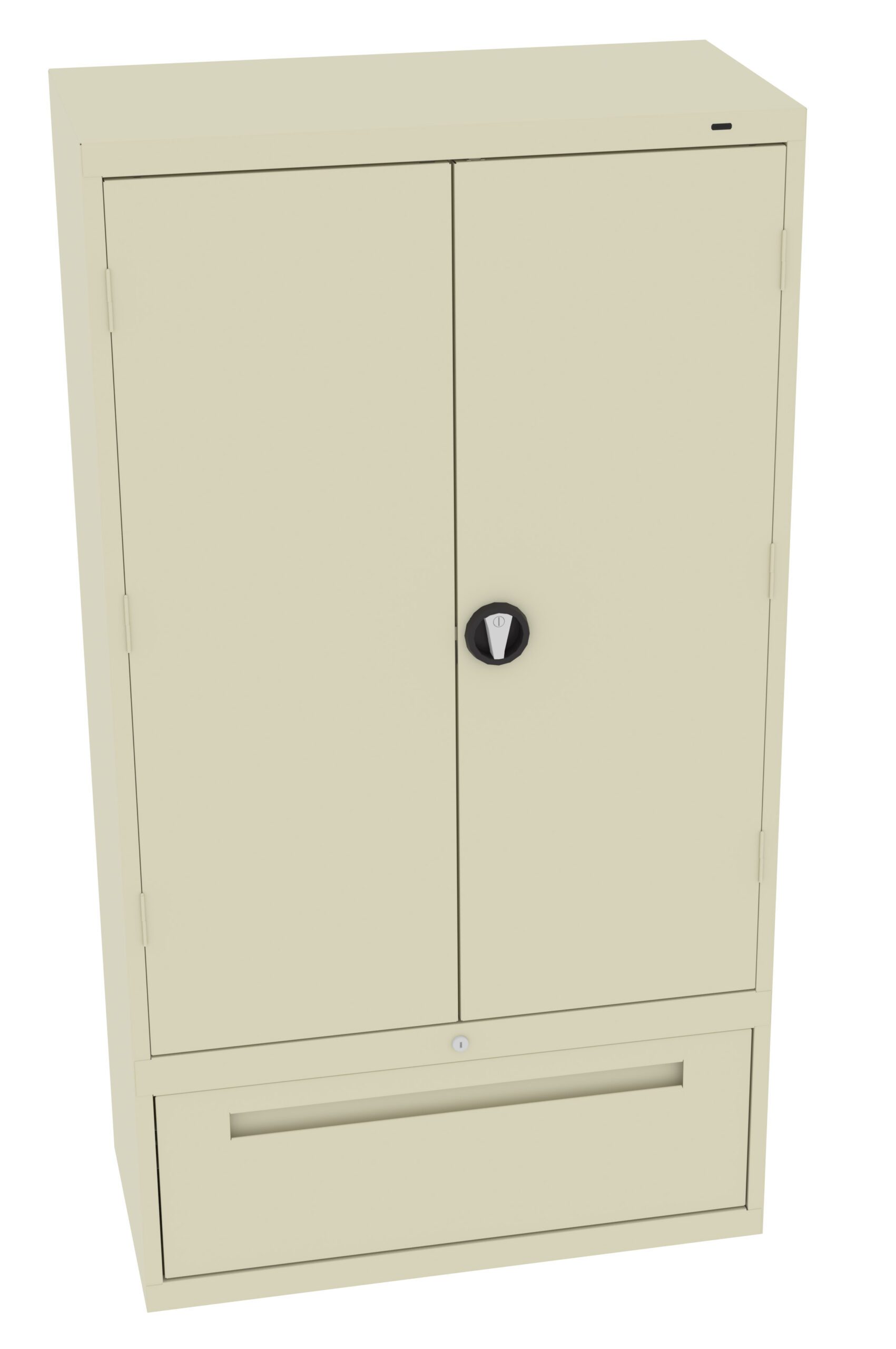 Tennsco 66″ High Storage Cabinet with File Drawer – Assembled, Champagne/Putty