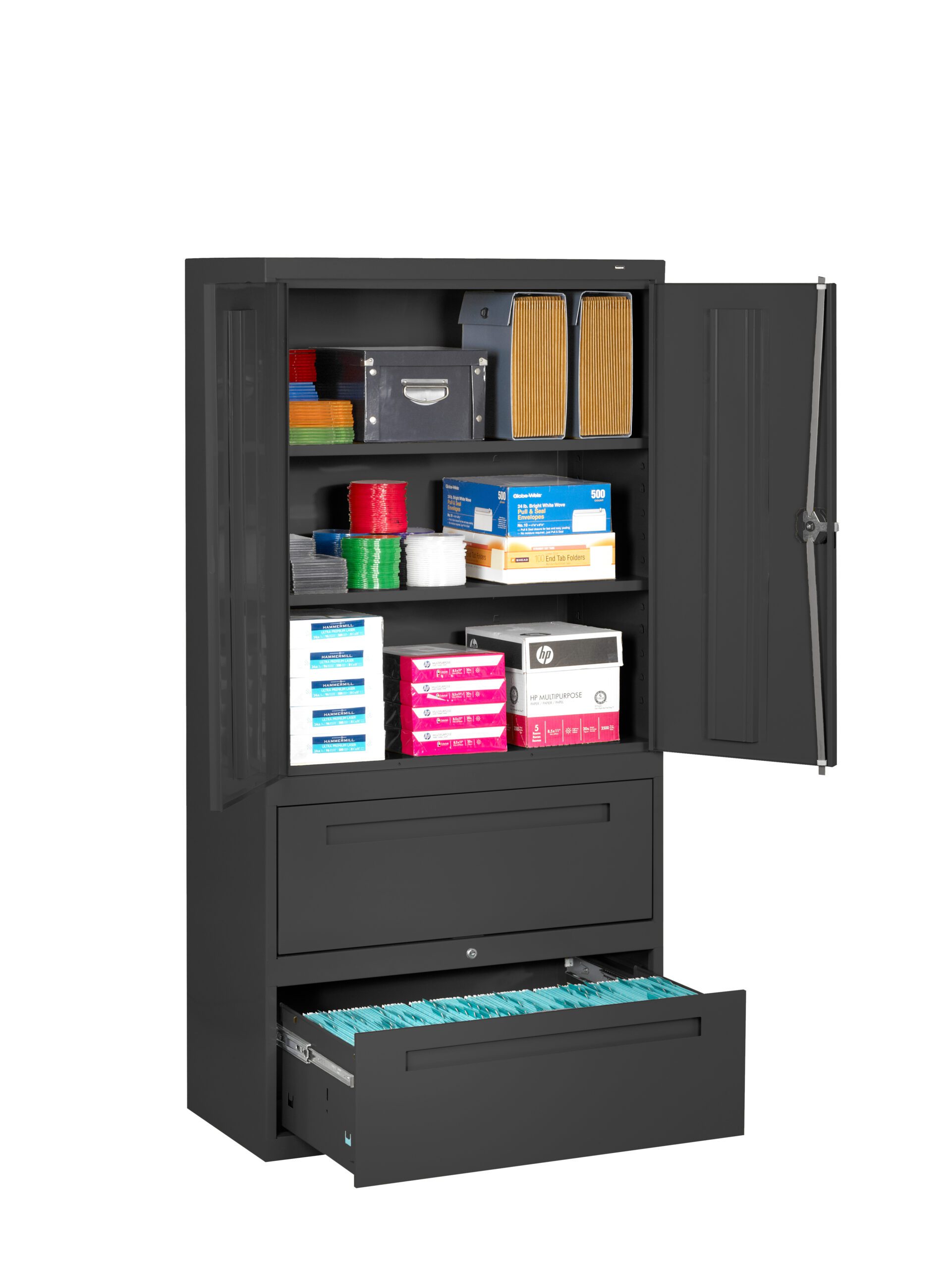 Tennsco 72″ High Storage Cabinet with File Drawers – Assembled, Black