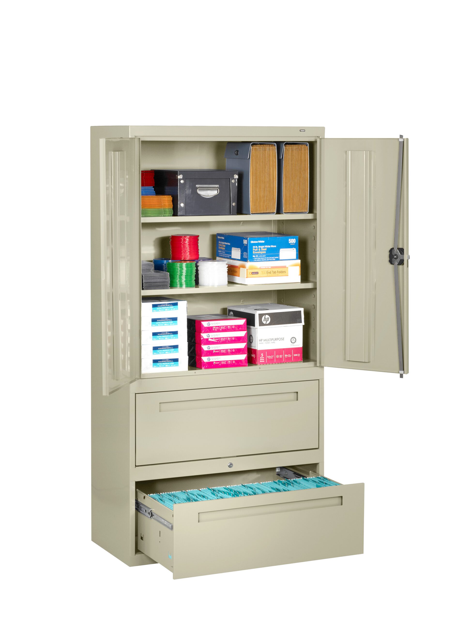 Tennsco 72″ High Storage Cabinet with File Drawers – Assembled, Champagne/Putty