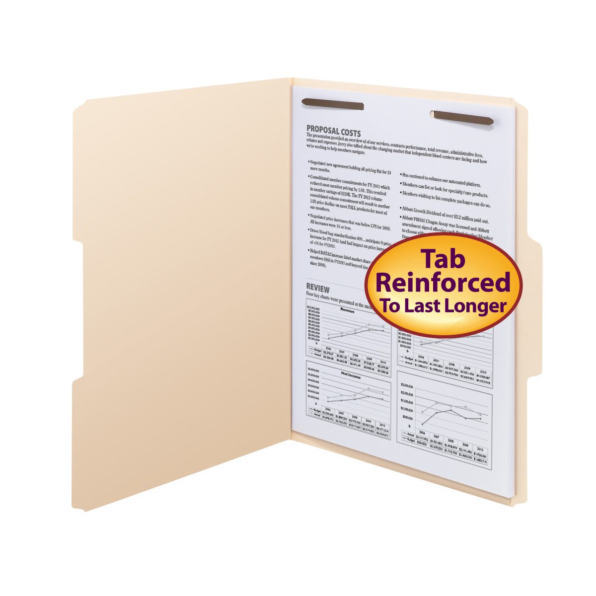Smead Fastener File Folder, 1 Fastener, Reinforced 1/3-Cut Tab, Letter Size, Manila, 50 each per Box (14534)