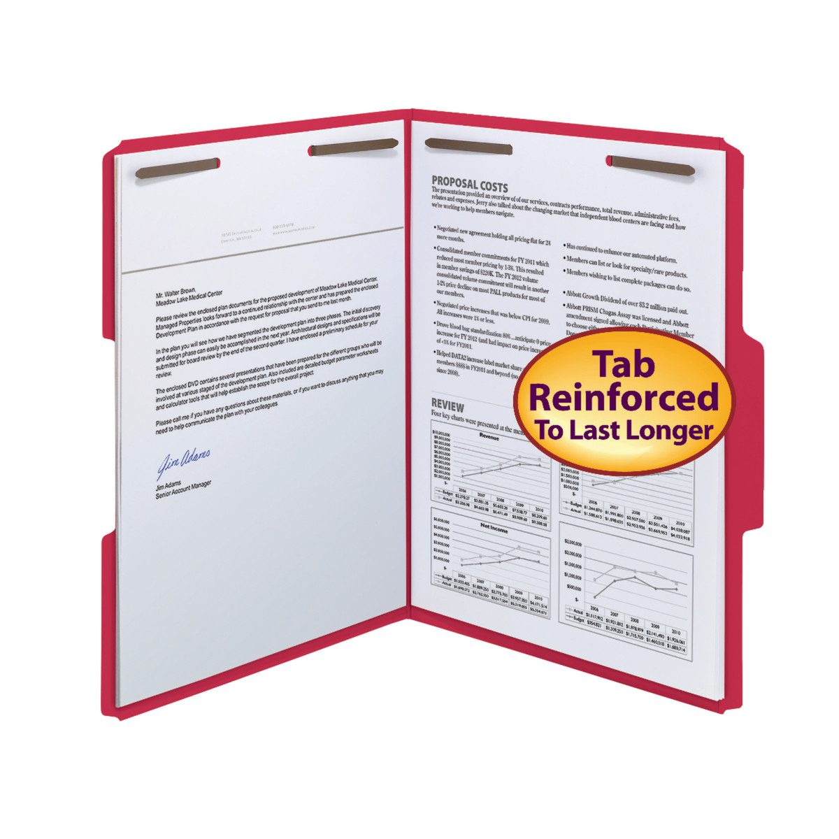 Smead Fastener File Folder, 2 Fasteners, Reinforced 1/3-Cut Tab, Letter Size, Red, 50 per Box (12740)
