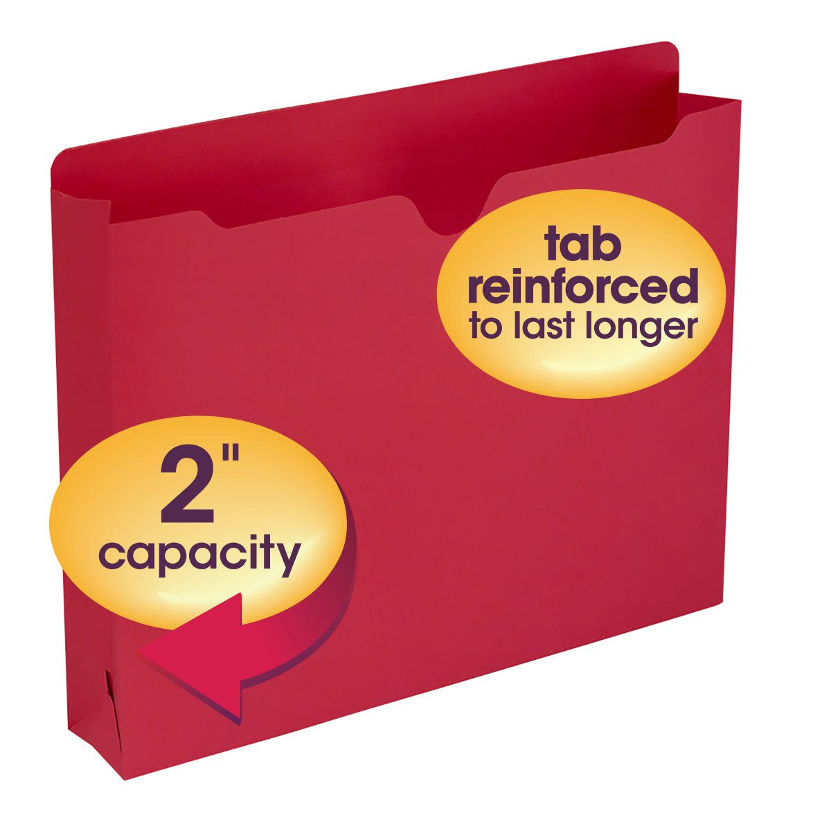 Smead File Jacket, Reinforced Straight-Cut Tab, 2″ Expansion, Letter Size, Red, 50 per Box (75569)