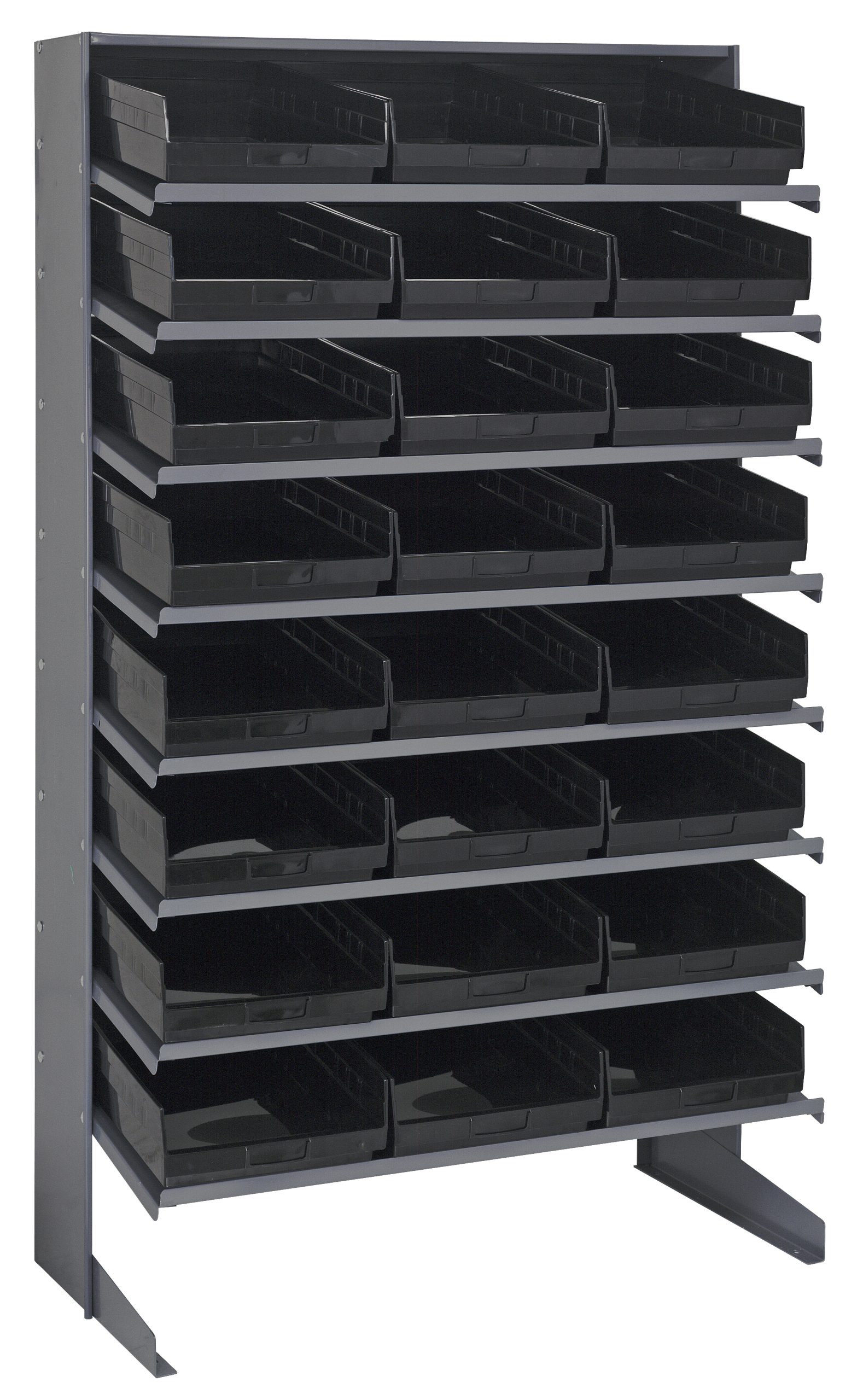 Pick Rack, Slopped, Single Sided, 18″D X 36″W X 60″H, 400 Lbs. Capacity, Includes: (8) Shelves And (24) Qsb110 Black Bins, Galvanized Steel