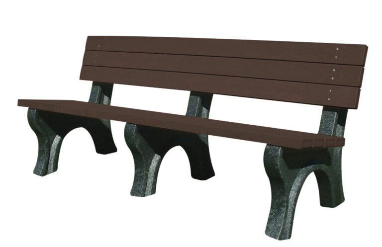 Get the look of a traditional bench at an economic price. Made entirely of 100% post-consumer recycled plastic, sustainability, quality and comfort are combined in a maintenance free bench. It will never need scraping, staining, painting or storage and stands up to the harshest weather Mother Nature can dish out. Also available is permanent installation hardware, or engrave a message on the back boards (contact factory for details).Heavy duty, sturdy and durable are trademarks of the Landmark 8′ bench. Made in America of100% post-consumer recycled plastic, it has a generous seat of 2″ x 6″ planks and a wide 2″ x 10″blackboard. Make a statement with this sustainable and eco-friendly addition to your landscape! Permanent installation available separately. Customer engraving with your name, message or logo available (contact factory for details).
