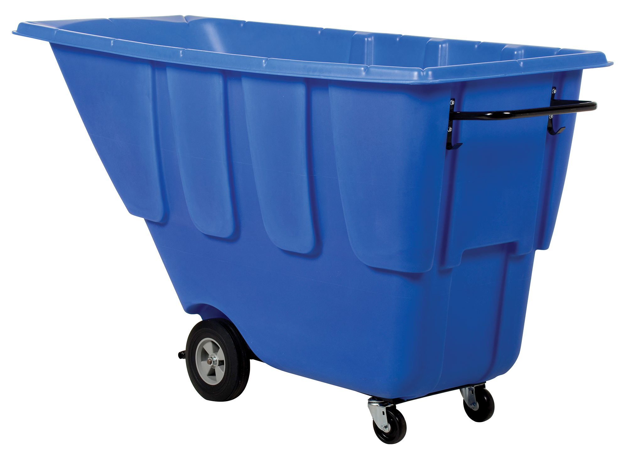 Durable plastic construction withstands extreme summer heat and allows collecting waste from multiple bins at a collective time. Great for high traffic areas such as: warehouses, fairs, ball parks, schools, etc. Each container includes two solid rubber wheels for easy portability. Tapered front makes it easier to pour materials into yet another larger container. Keep your waste out of sight in our medium duty and easy to move tilt trucks.