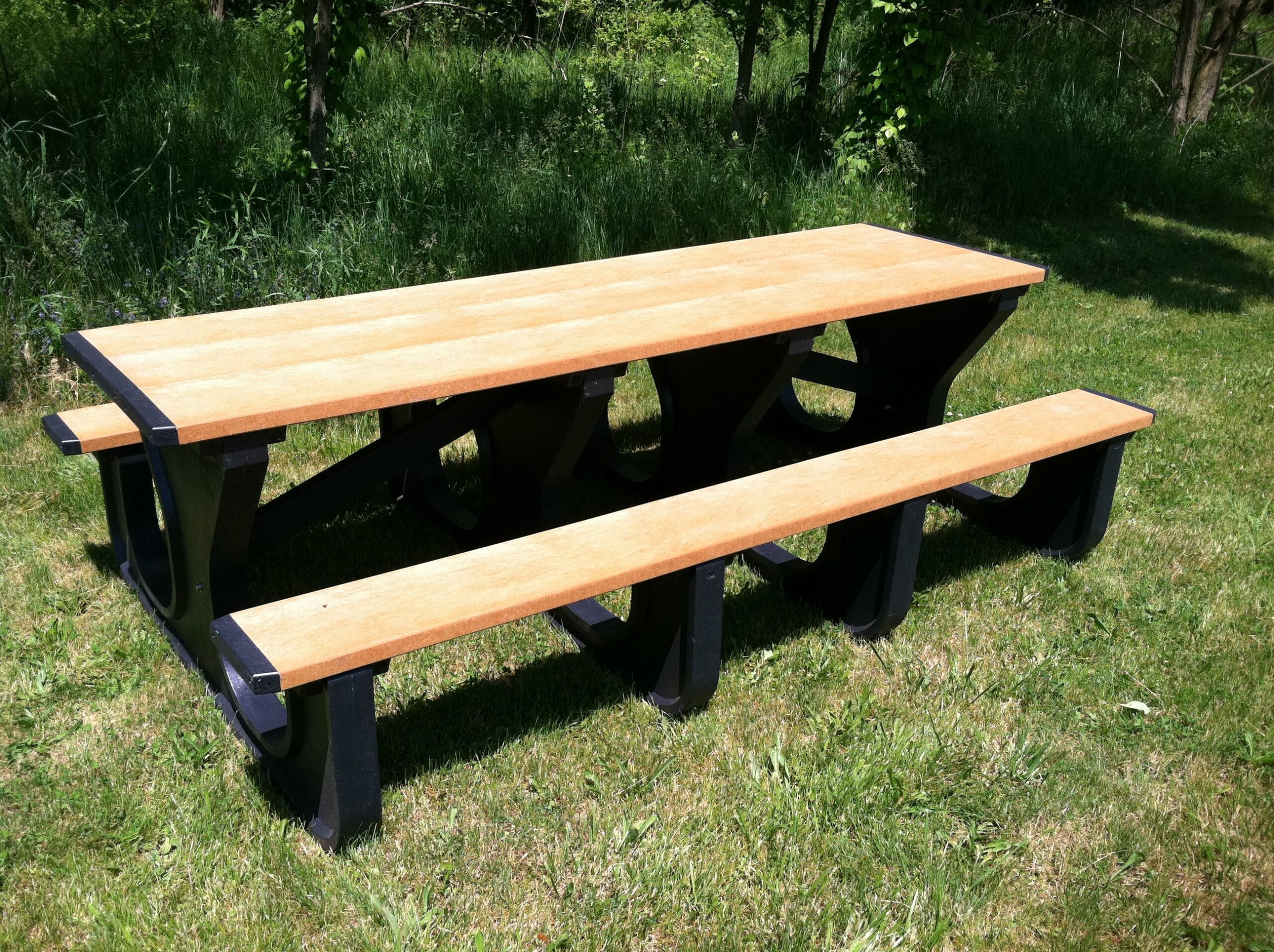 The recycled plastic picnic tables are great for both recreational and commercial uses. The surfaces are resilient to adverse environments that arise throughout the year. The strong lightweight construction makes it easy to move from one location to another. The seat layout is easily accessible. ADA designs are also available.
