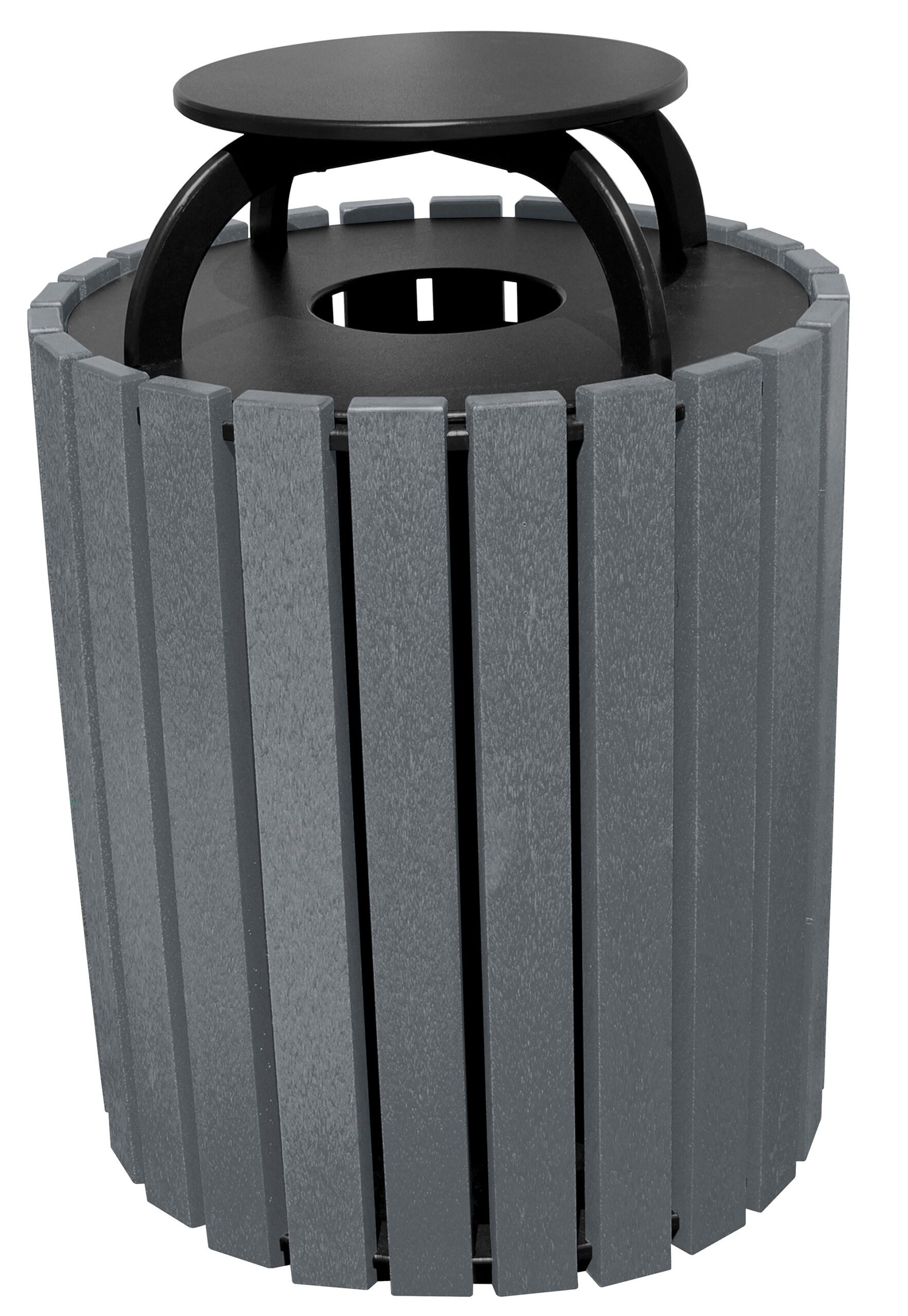 The large capacity 49 gallon receptacle can be used for trash or as part of a recycling station. Made in America of 100% post-consumer recycled plastic, it include an inner plastic liner and is available in seven (7) colors with a black top. Stainless steel fasteners ensure a rust resistance long life, and are internal to provide a clean, blemish-fee appearance. Keep your environment clean and keep plastic out of the landfill at the same time. Rain caps available. We’ve added flare to utility with our Round Flare Top Receptacle! The unique deign has an inner liner and 33 gallon capacity, and is made in America of 100% post-consumer recycled plastic. It’s eco-friendly while helping keep trash/recyclables in their place.
