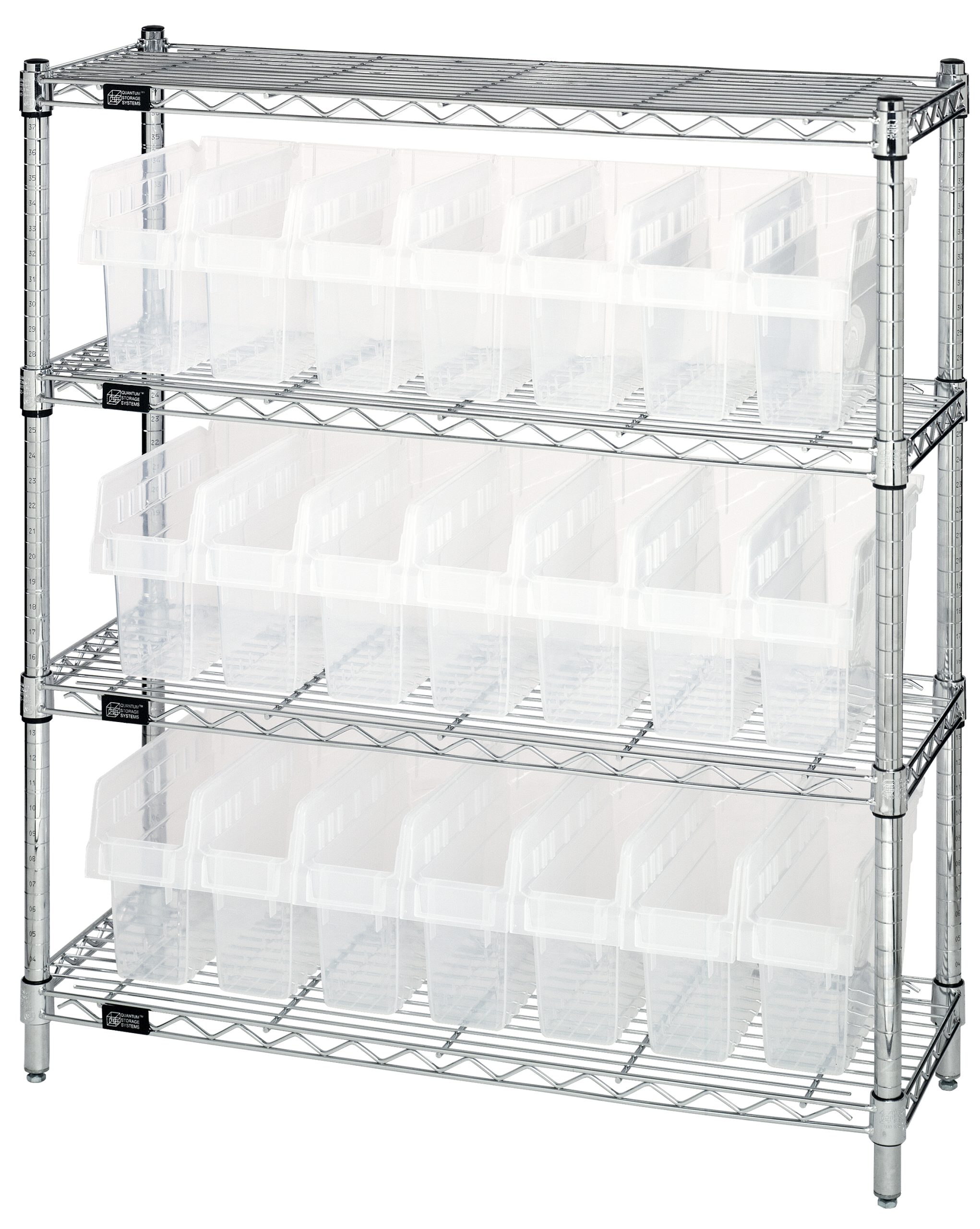 Quantum Bin Wire Shelving Center, 12″D X 36″W X 39″H, 800 Lbs Capacity Per Shelf, Includes: (4) Shelves And (21) Qsb801 Clear Bins, Chrome Plated Finish, Shipped Kd