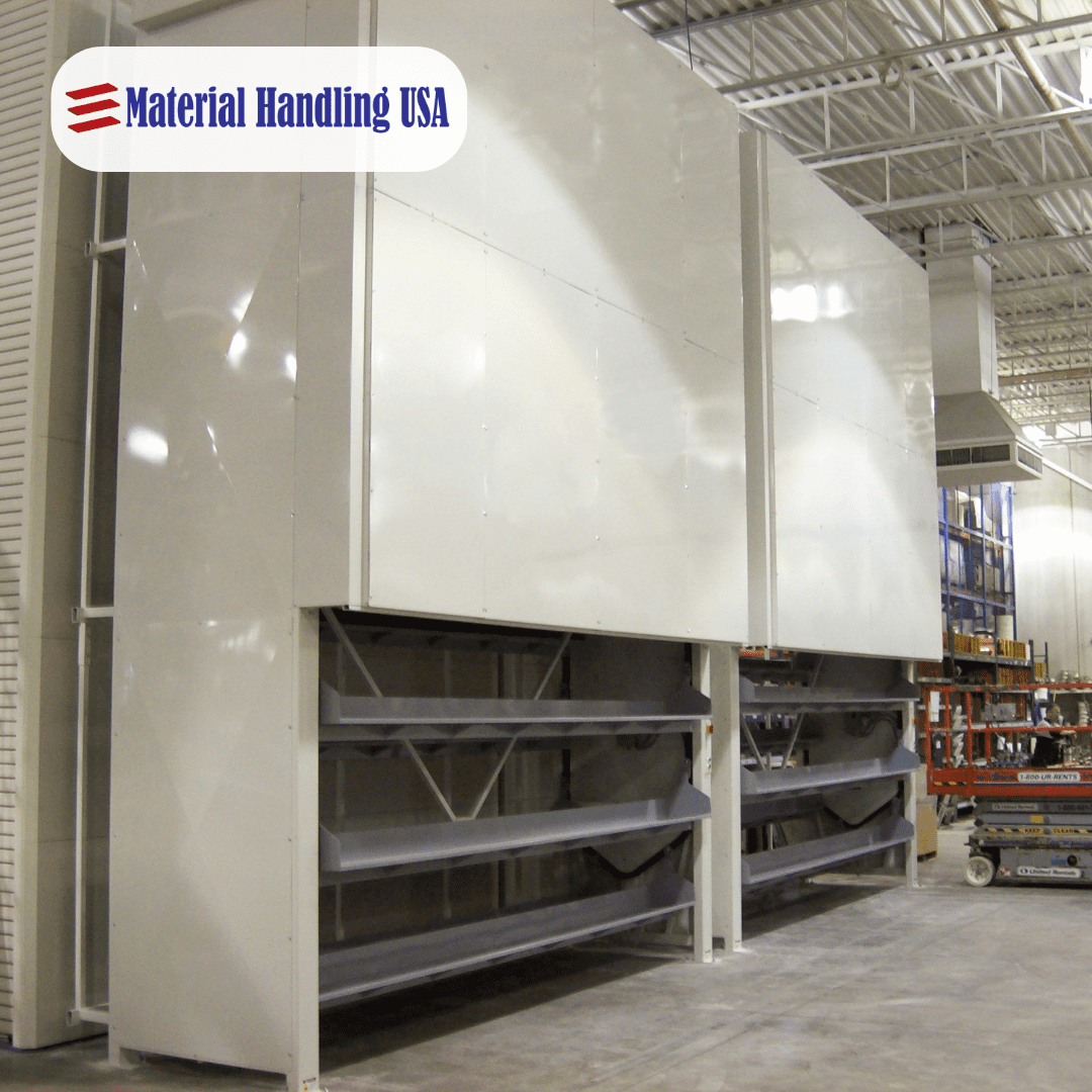 Vidir’s storage systems operate with motorized mechanisms that vertically move shelves or racks, bringing items to an accessible height and maximizing storage space.